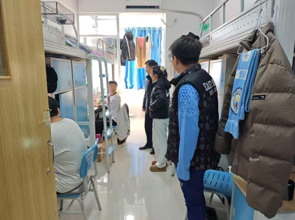 走访过程中,老师与同学们亲切交谈,认真倾听同学们在宿舍生活中遇到的困难与需求,针对同学们提出的关于专业课程设置、实习就业指导等方面的疑问,老师们耐心解答并结合自身经验给出相关指导建议。此外,老师们对违禁电器使用、插板上床灯具体问题进行逐一排查,还特别强调同学们要增强安全防范意识,共同营造安全、舒适、和谐的宿舍氛围。最后,老师鼓励同学们要始终保持良好的精神风貌,积极投入学习和生活,努力成长为有理想、敢担当、能吃苦、肯奋斗的新时代青年。