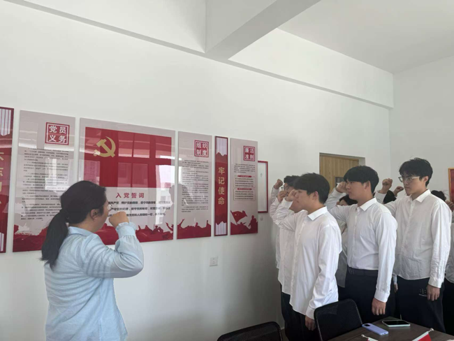 为深入贯彻落实党性教育要求,助力党员学子铭记初心使命,传承红色基因,5月14日,英国正版365官方网站在8号楼329一站式员工社区组织开展“铭记誓言守初心,青春奋进担使命”入党宣誓活动。