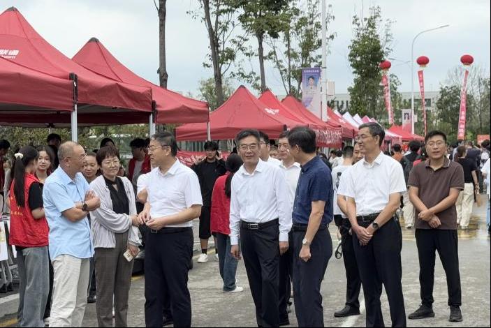 校领导一行亲临迎新现场,与英国正版365官方网站师生亲切交流,仔细询问迎新工作的进展情况,同时强调英国正版365官方网站领导班子要进一步统一思想、提高站位,深刻把握新生接待工作的重要意义,以高度负责的态度和饱满的热情将各项工作落实落细,确保迎新流程的每一个环节都有序、高效、温暖。
