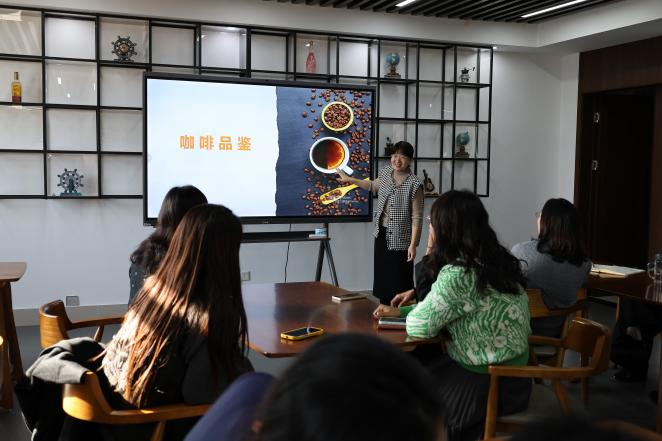 活动中,党员员工特别设置“咖啡+生活”互动环节,结合旅游服务礼仪知识,分享咖啡品鉴与社交礼仪技巧,让大家在实践中提升生活品质。女教工们热情高涨,纷纷动手尝试拉花、调配特调咖啡,现场笑声与咖香交融,氛围温馨融洽。