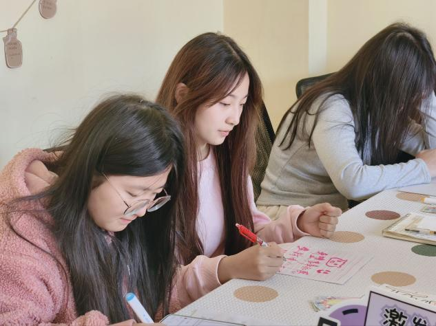 活动现场,同学们自主挑选喜欢的彩纸、贴纸、便签纸等材料,动手装饰专属小子:有的用柔和的粉色与蓝色马克笔勾勒云朵、星星,搭配可爱的动物贴纸,打造出充满童趣的“快乐盲盒”;有的以沉稳的灰色为底,点缀金色闪片与励志文字贴纸,让盲盒承载“勇敢直面压力”的奋进力量。在创作间隙,同学们认真在便签纸上写下真挚的期待和温暖有力的自我鼓励,简单的字句中饱含着向上的力量。活动最后,主持人邀请部分同学展示作品并讲述背后的故事,简短的几句分享充分展现出同学们对生活的热爱与积极乐观的人生态度。参与活动的同学们纷纷表示,此次活动不仅帮助自己梳理情绪、掌握了心理调节方法,更在互动中收获情感共鸣与支持,切实提升了心理健康素养。
