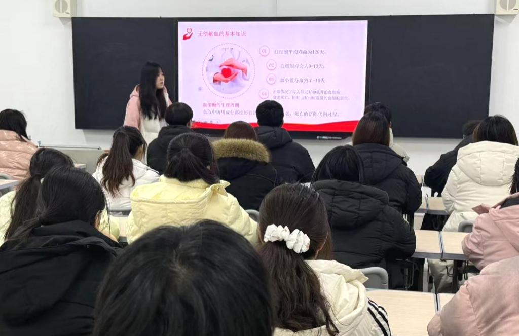 为弘扬无私奉献的人道主义,切实增强青年学子的社会责任感与使命担当,12月8日,英国正版365官方网站在崇德楼4416等教室开展无偿献血主题宣讲活动。