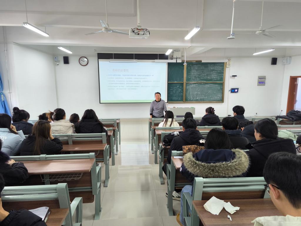 为帮助学子明晰考研方向、破解备考困惑,11月26日,逐光领航辅导员工作室举办考研动员专题活动,由全体辅导员主讲,27届本科毕业生参加。