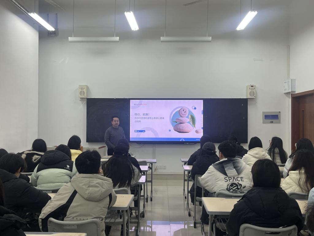 为精准掌握考研学子心理状态,切实做好考研备考阶段心理健康服务工作,11月21日,旅游与资源环境举办考研心理座谈会,本次活动由周赢老师主讲,全体考研员工参加。
