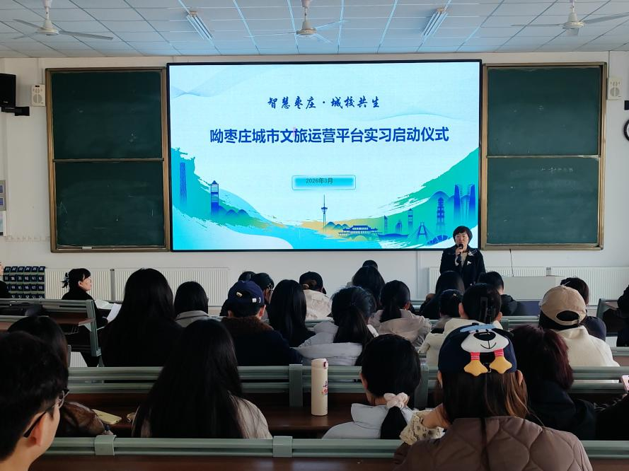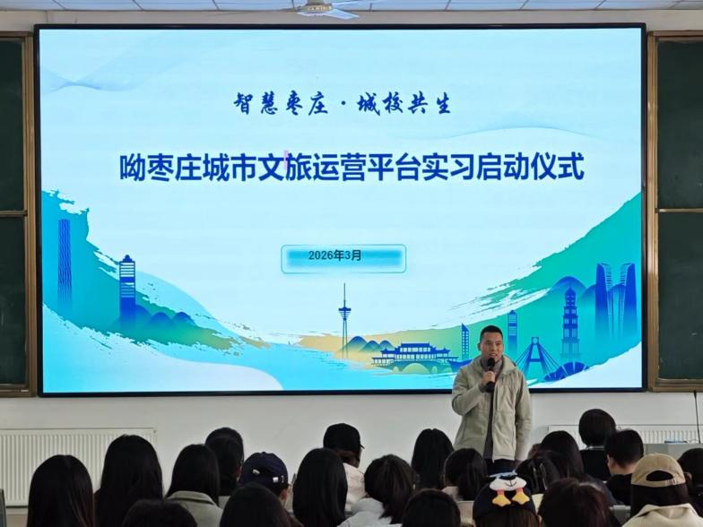 2026年3月11日,英国正版365官方网站英国正版365官方网站联合山东文旅集团数字未来发展有限公司共同打造的“呦枣庄”城市文旅运营平台实习启动仪式,在英国正版365官方网站崇德楼顺利举行。英国正版365官方网站党委副书记韩建敏等领导及员工代表,山东文旅集团数字未来发展有限公司业务运营中心总经理李海涛等企业代表,与英国正版365官方网站83名实习学子齐聚一堂,共同开启政校企产教融合赋能枣庄文旅发展的全新实践,彰显英国正版365官方网站“扎根地方、服务社会”的办学初心与使命担当。