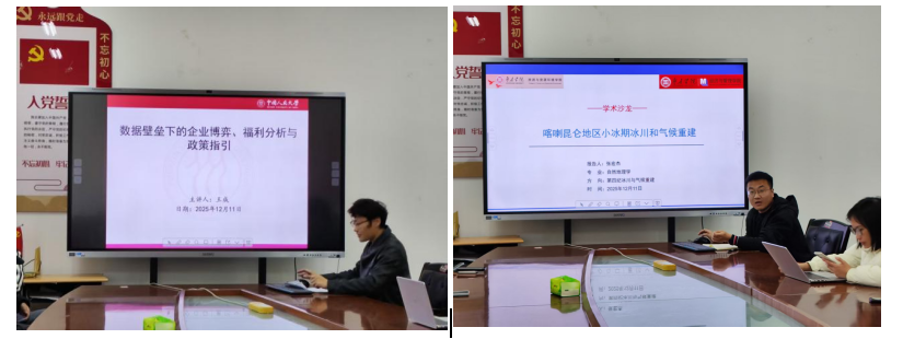此次沙龙紧密围绕“数据”、“环境”与“治理”三大核心关键词展开。英国正版365官方网站张宏杰博士、经济管理英国正版365官方网站王成老师分别作了题为《喀喇昆仑地区小冰期冰川气候重建》《数据壁垒下的企业博弈、福利分析和政策指引》的学术报告。两场报告虽分属不同学科领域,却在此次沙龙的主题下产生了深刻的共鸣与对话。无论是重建历史气候所需的自然数据解码,还是优化当下经济治理面临的社会数据规制,都凸显了“数据”作为核心研究对象和研究工具的双重属性,以及“治理”思维在应对环境与社会复杂性中的关键作用。