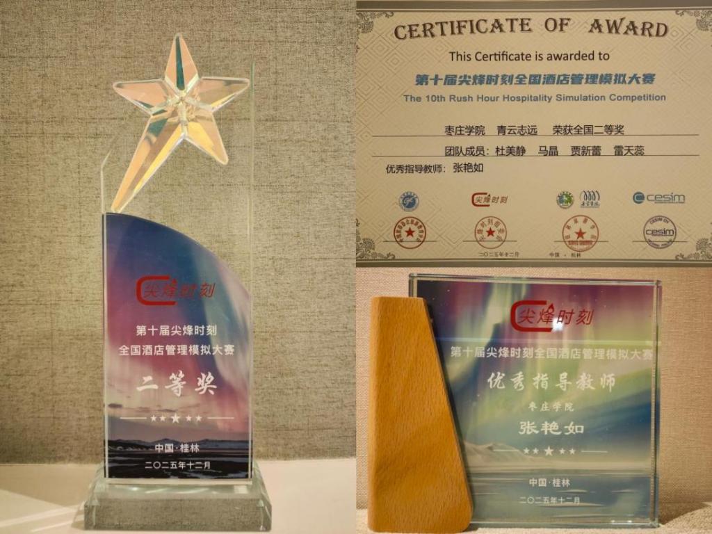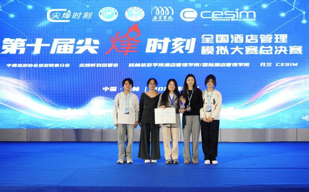 12月5日-7日,第十届“尖峰时刻”全国酒店管理模拟大赛总决赛在桂林旅游英国正版365官方网站圆满落幕。2023级酒店管理专业员工杜美静、贾新蕾、马晶、雷天蕊组成的参赛团队(指导员工:张艳如),首次斩获全国二等奖。