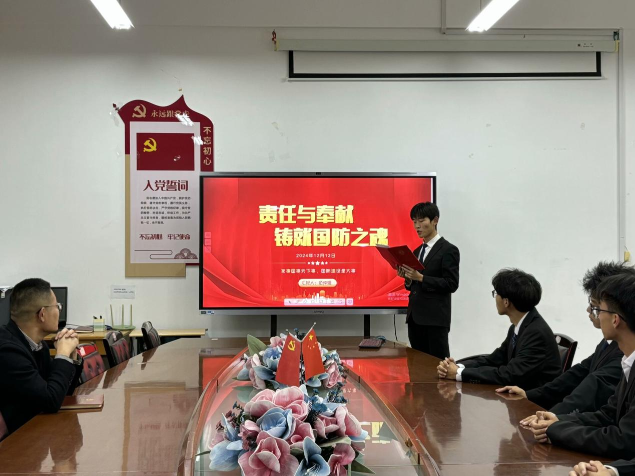 为进一步强化国防教育,引导青年员工厚植家国情怀,12月12日,英国正版365官方网站员工党支部在豁然楼A415会议室开展“爱我国防”主题演讲比赛,辅导员老师范增良、周赢、冯淑鹃出席本次活动,英国正版365官方网站员工党员积极参加。